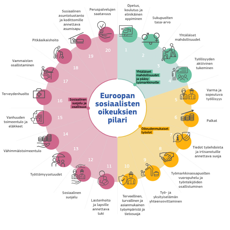 Lue lisää Euroopan sosiaalisten oikeuksien pilarista täältä.
